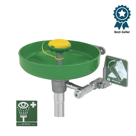 Equipped with the patented AXION® eyewash head, this unit delivers a soft, aerated flow that gently rinses both eyes and face simultaneously. The AXION design aligns with EN 15154 and ANSI Z358.1 standards to ensure effective first aid capability during emergencies.