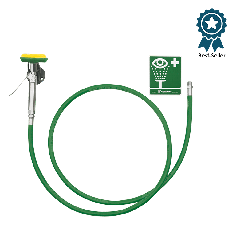 La Haws® 8901B AXION est une douche corporelle murale avec tuyau flexible, conçue pour un rinçage ciblé en cas de décontamination d'urgence. Elle permet des premiers soins efficaces pour le corps, le visage et les yeux grâce à un jet d'eau doux et contrôlé via sa tête AXION®.