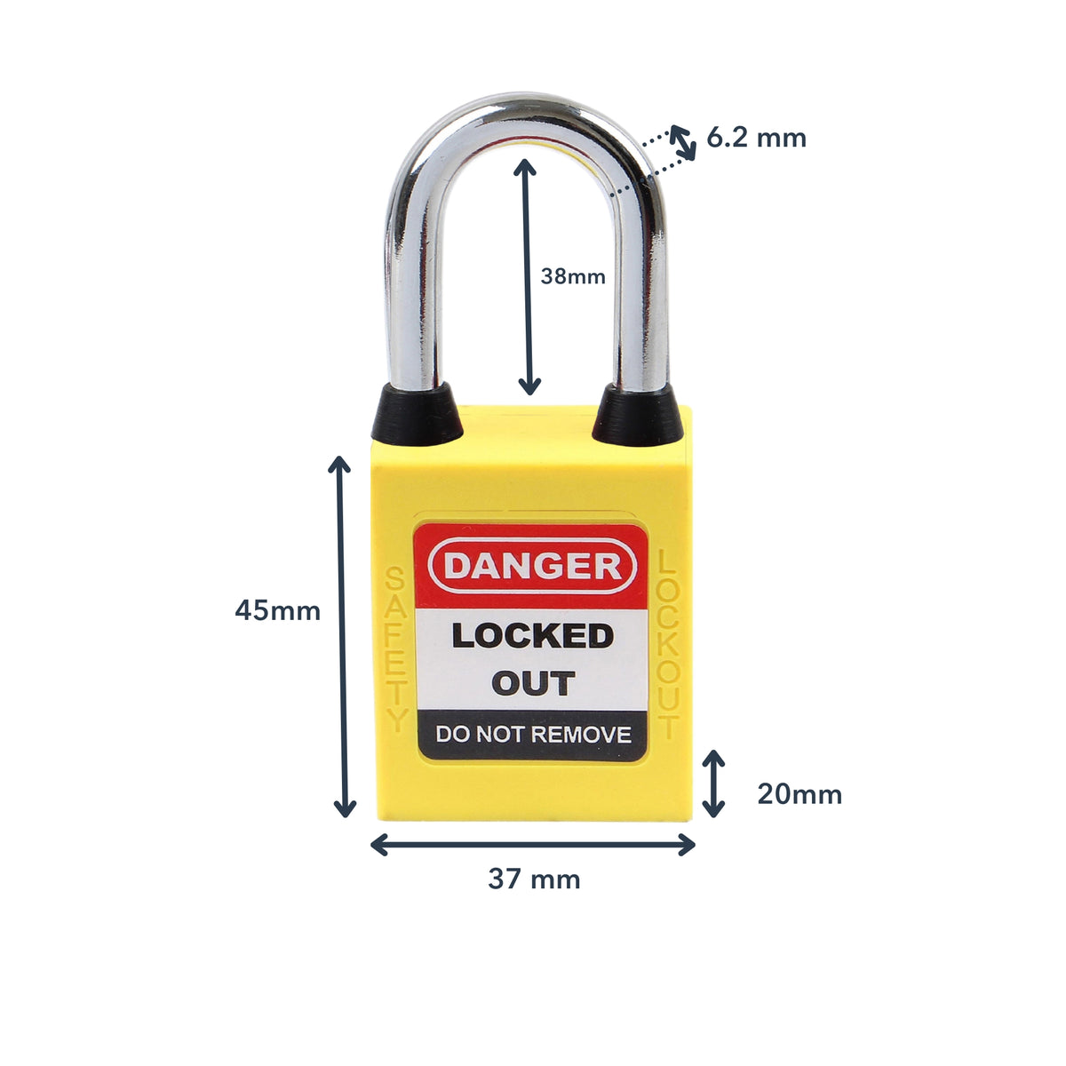Cadenas à clé différente, 38 mm, à anse en acier. Conforme aux normes OSHA, conçu spécifiquement pour les besoins de la consignation industrielle.